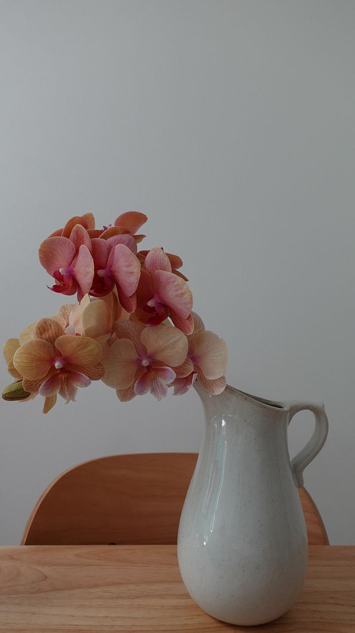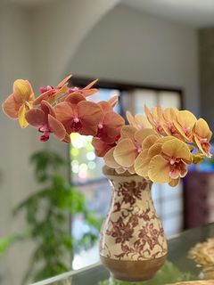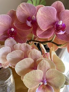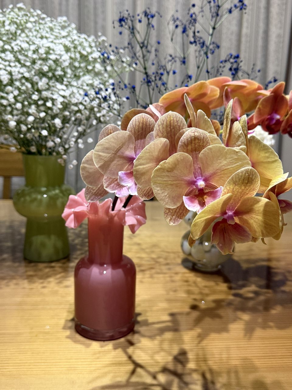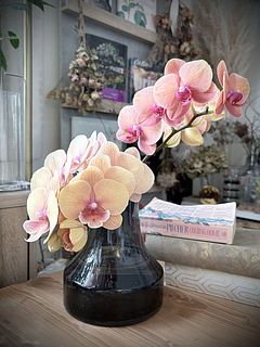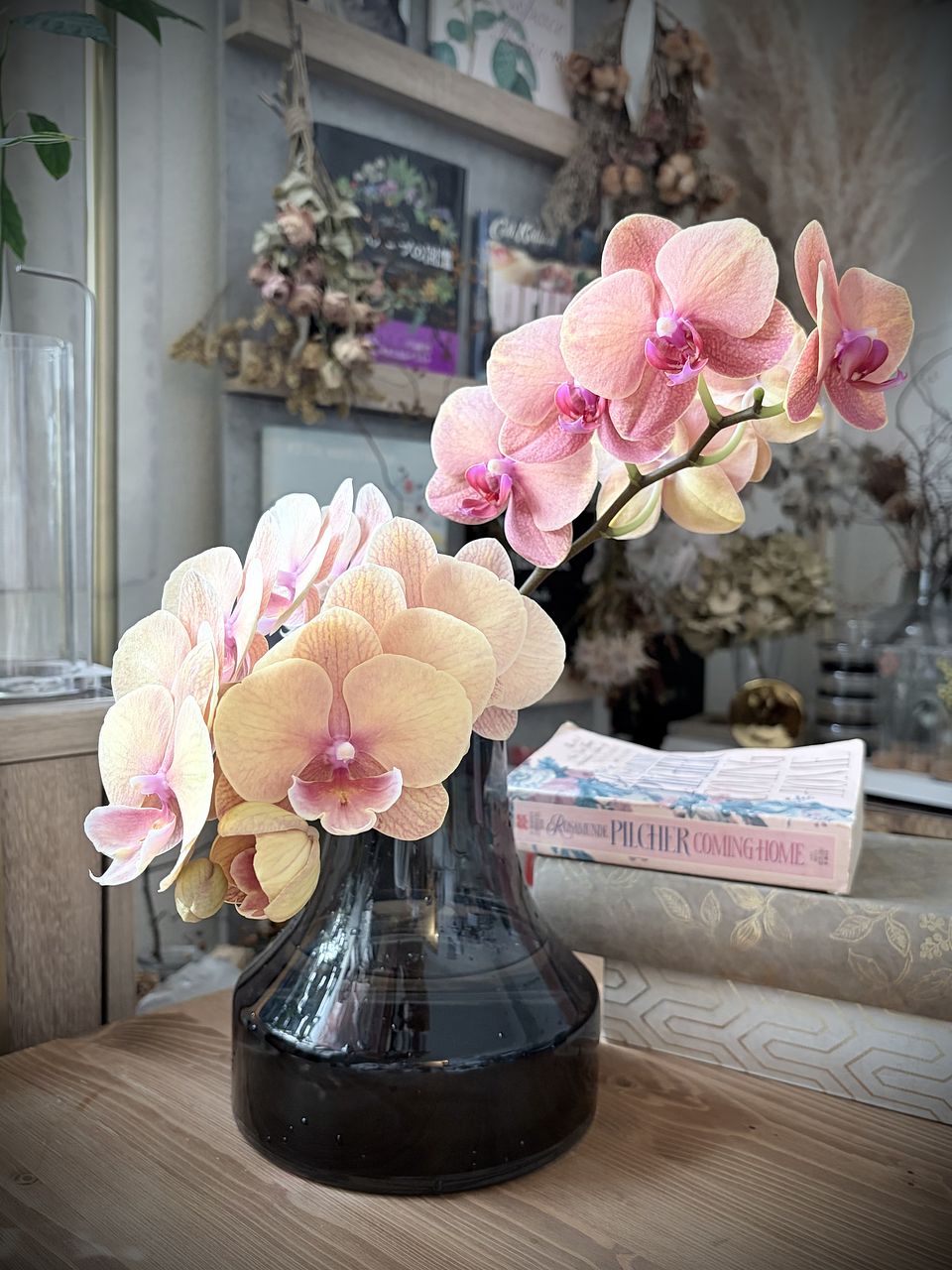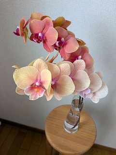 これまで何度もこちらでファレノを購入していますが、今までで一番大輪で立派なものが届きました! 長さも30cmと書いてありましたが実際は45cm近くあり、つぼみもあるため切り戻ししながら長く楽しめそうです。色は画像よりは薄めで2本の違いがそこまでありませんが、グラデーションが美しく大変満足です☺️