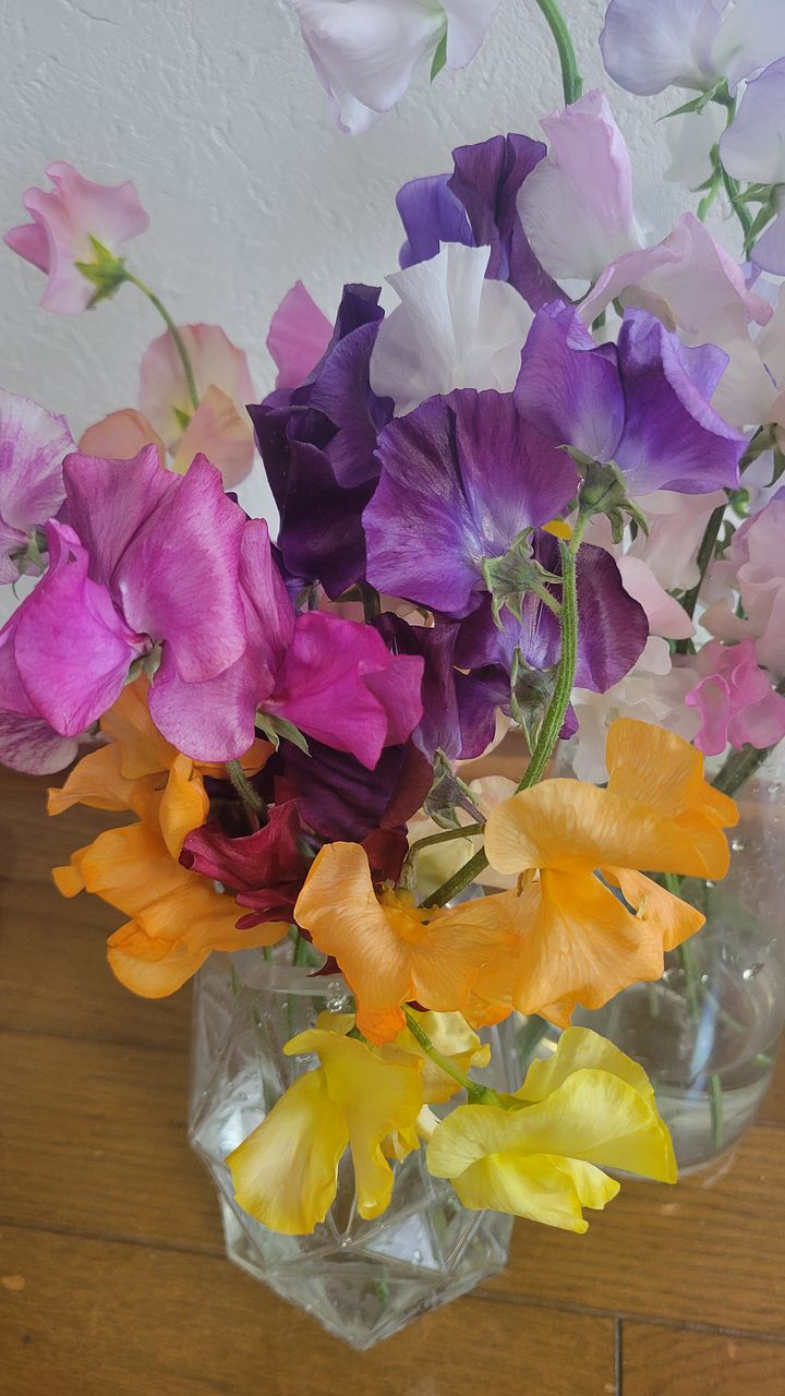 スイートピーをたっぷり20本以上!色はおまかせでカラフルにお届けします。
