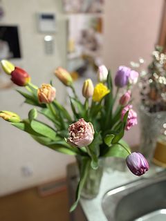 様々な色、形のチューリップがたくさん入っていて楽しめました! ボリュームたっぷりだったので最初は色ごとに分けて飾り、時間が経ってからまだ元気な子たちをMIXしてまとめて飾りました。 また来年もお願いしたいです。