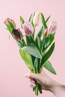 早くもお花の世界では春が訪れました🌷今回はフリンジ咲き入りのショートサイズのチューリップを束ねました。