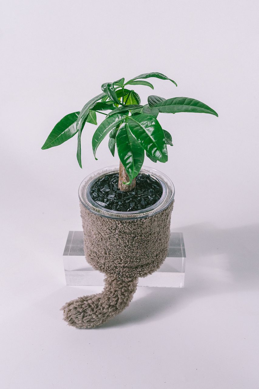 しっぽがちょこんと生えた、遊び心たっぷりのパキラ🐈🌿