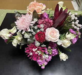 異なるピンクの重なりが、甘さと華やかさのバランスを生み出す大人可愛いブーケです。