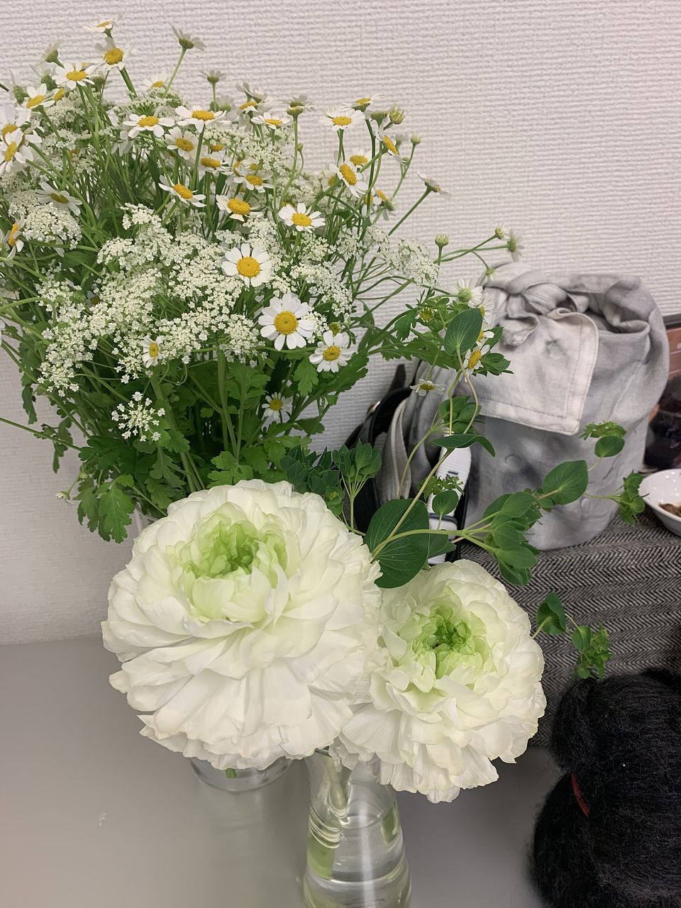 ふわふわゆれるマトリカリア「シングルペグモ」と「ホワイトレースフラワー」をたっぷり束ねました💐