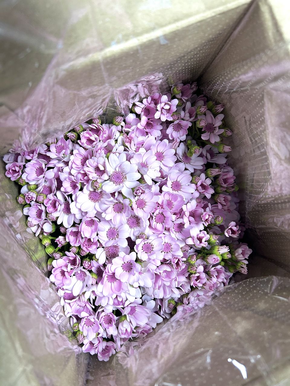 箱を開けたら 可愛らしいピンクのお花畑💐 ボリュームたっぷりで とても可愛いです💕