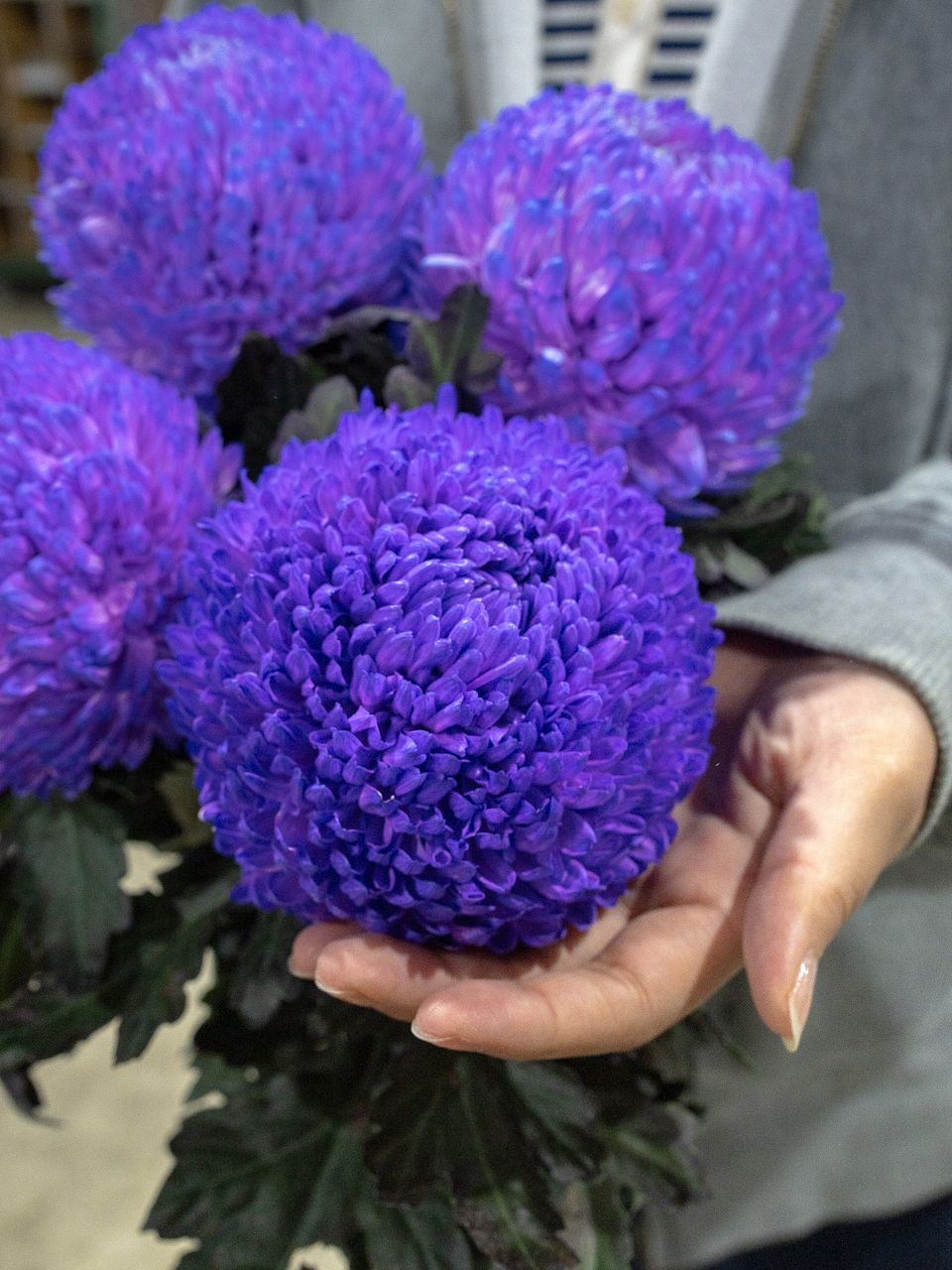 ユニコーンのような不思議カラーが目を惹く、ピオニー咲きの大輪マム🦄