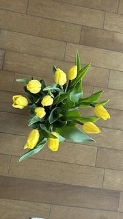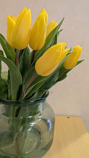 とても新鮮で状態のいいチューリップです。写真の通りのあざやかな黄色で部屋が明るくなります。