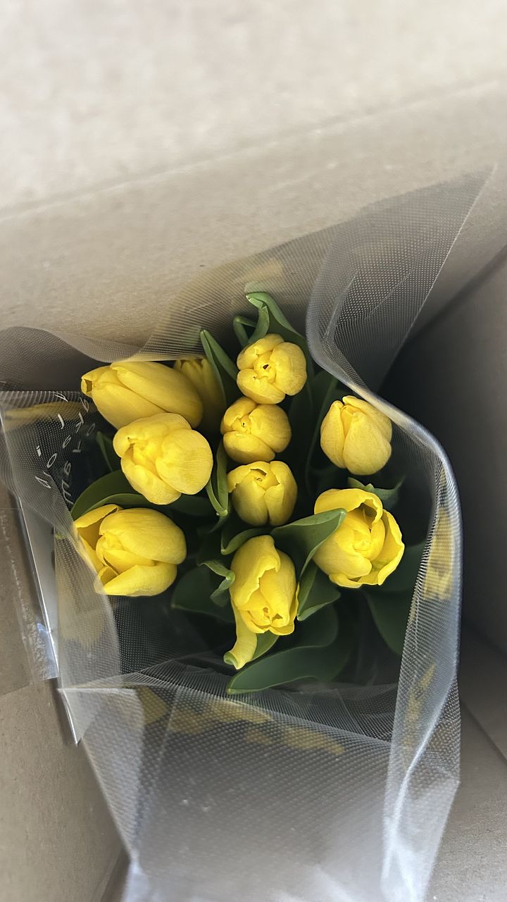 写真の通りのイエローが映えるチューリップ♪ チューリップを購入したのは初めてです。 つぼみのような状態で届いたので、これから膨らんでいくのかなと楽しみです。