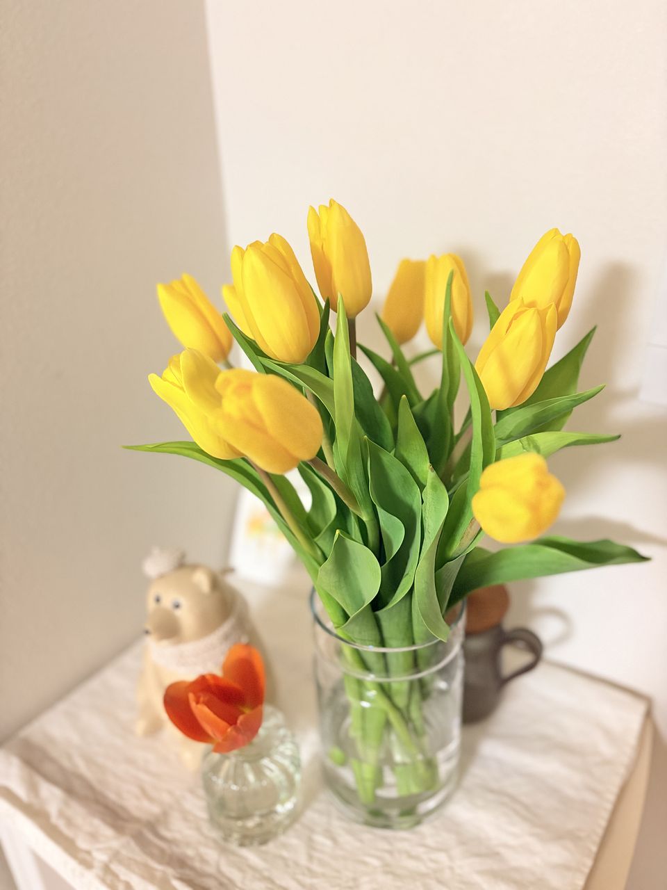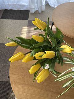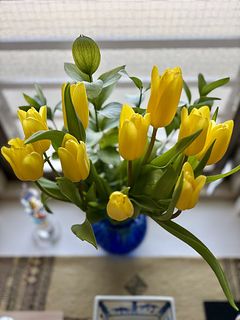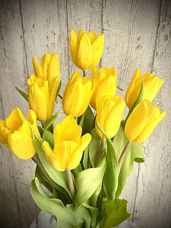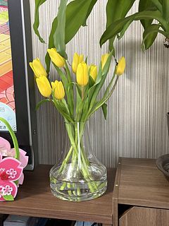 黄色のチューリップ 一日経つとしっかり水揚げしてくれました 黄色だけってところがとてもいいです💛