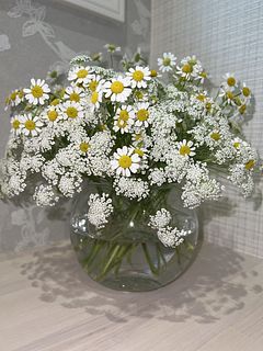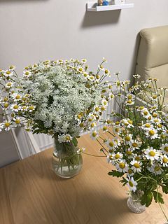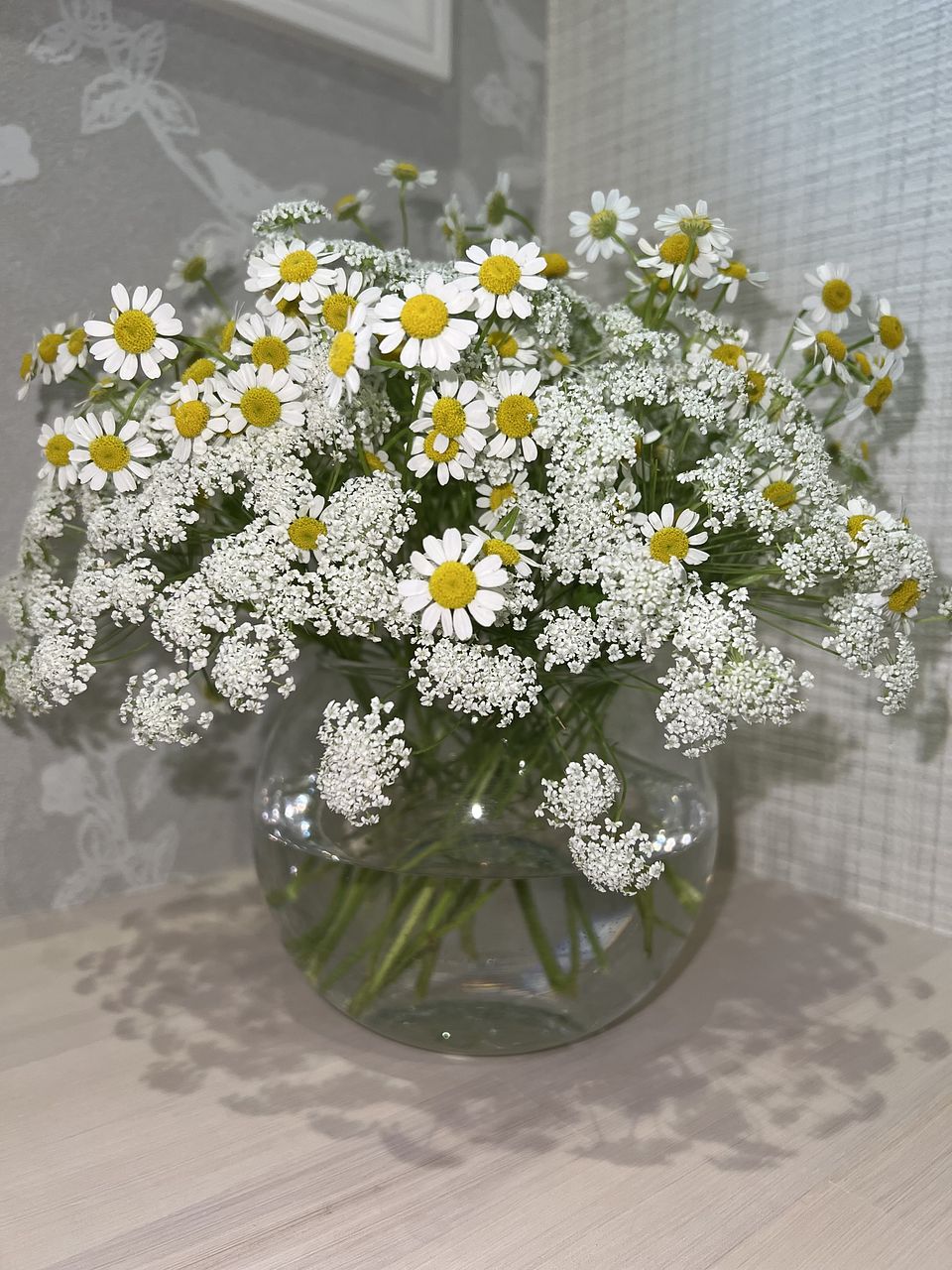 とにかくかわいいです❤️❤️❤️ マトリカリア11本、レースフラワー10本もありました! 届いた時は箱の中でぎゅっとなってるので少なく見えますが、花瓶にいけるとふんわりしてボリュームたっぷりです。 お部屋に春がやってきました🌼