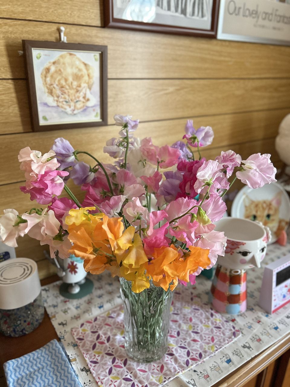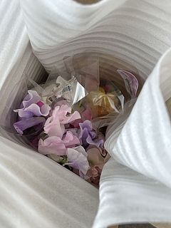色とりどりのスイートピーが届きます。色味はランダムです。
