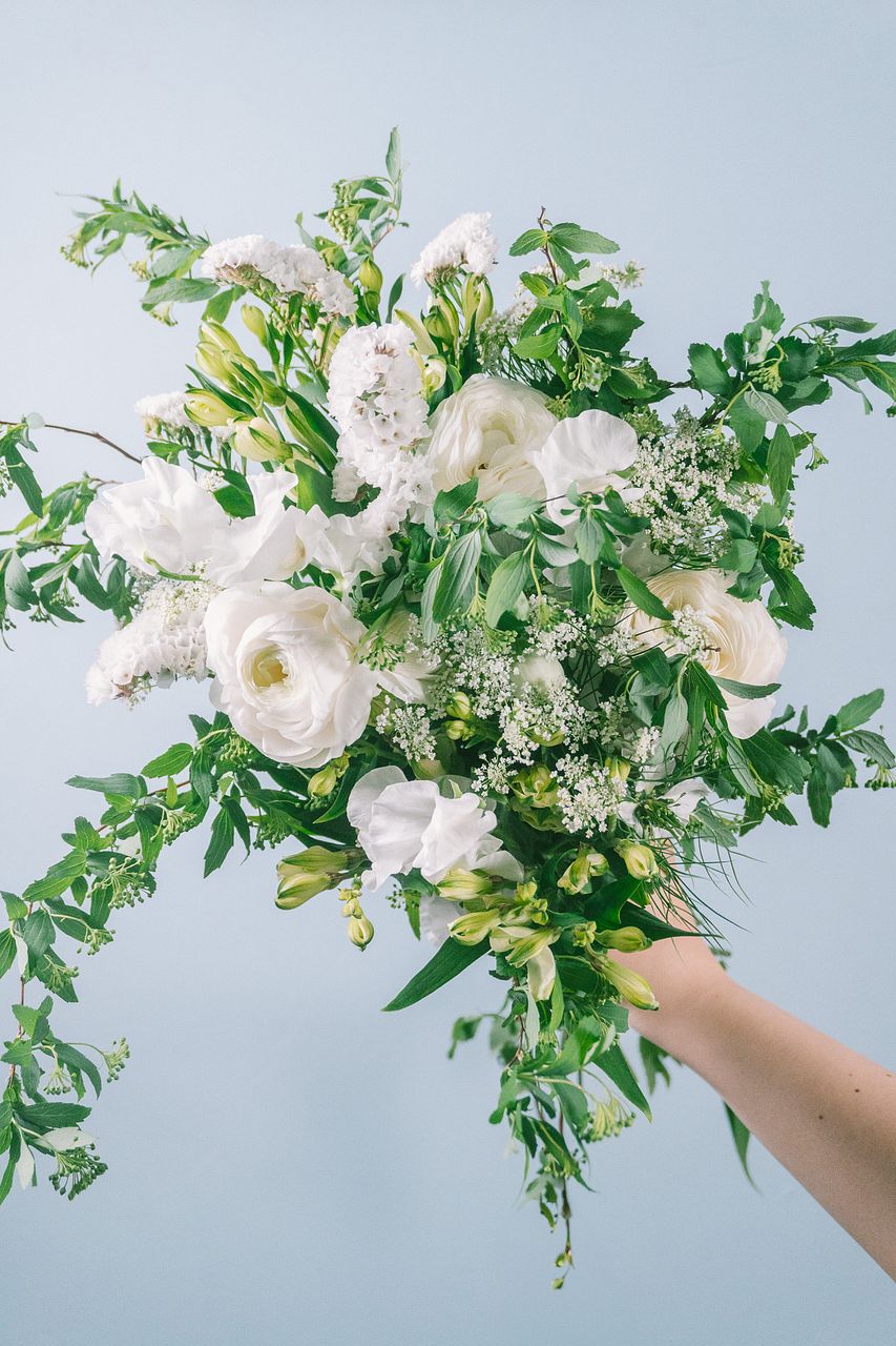 ホワイトカラーのラナンキュラスやスイートピーがまるで白鳥が優雅に舞っているよう🦢