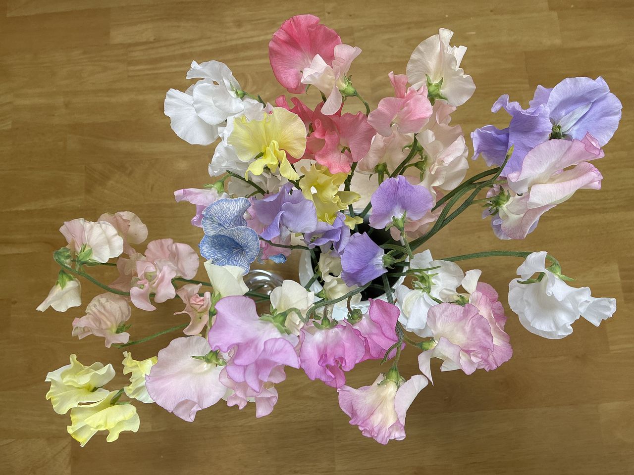 カラフルなスイートピー、ボリュームたっぷり!いい香りにつつまれて幸せです!