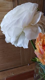 想像より1.5倍くらい大きいラナンキュラスでした😊1本1本ボリュームがあり、大満足です! チューリップは紫のフリンジ咲2本と赤白のパロット咲の1本で、ラナンキュラスに比べると控えめでしたが、可愛いです💕
