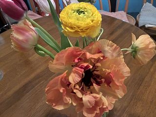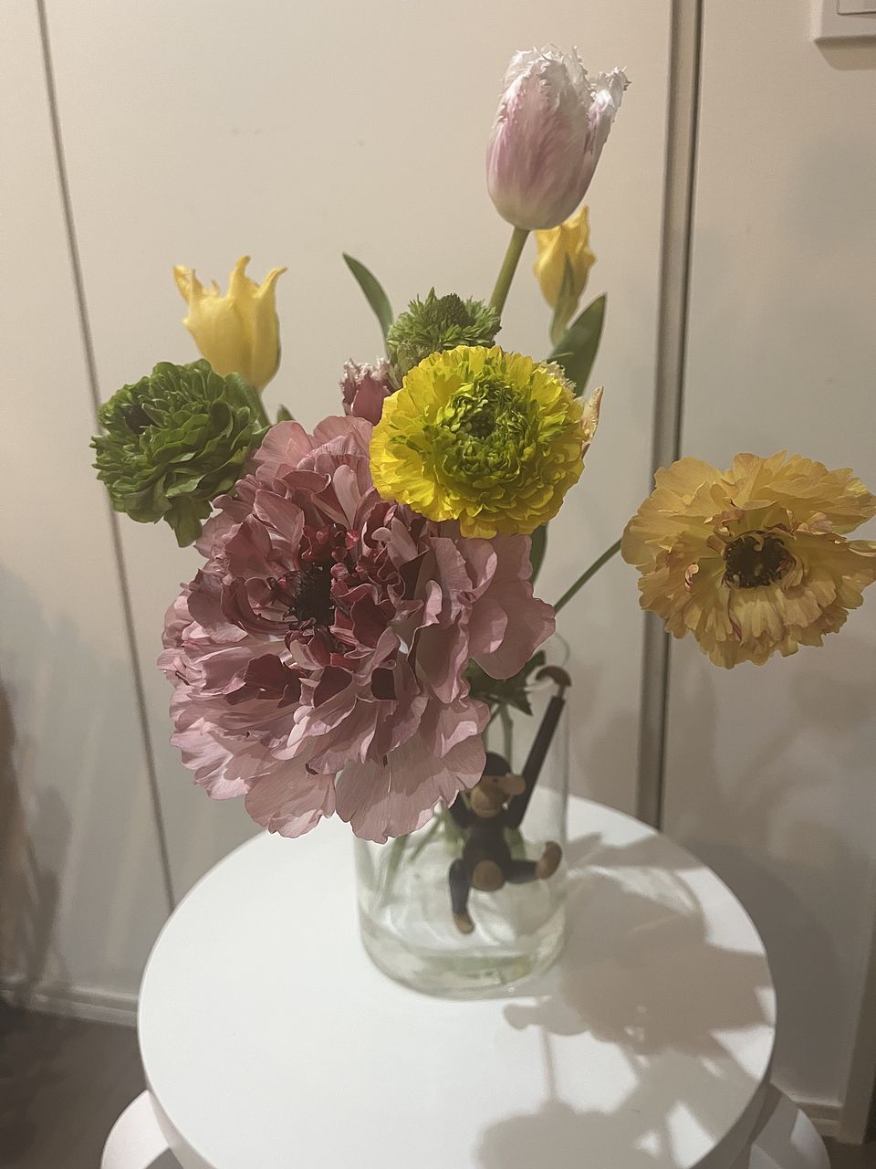 期待以上でした!つぼみのチューリップはまだまだ楽しめそう。ラナンキュラスは大きく、綺麗に咲いてました🩷ラフに飾りました!とても可愛い😍