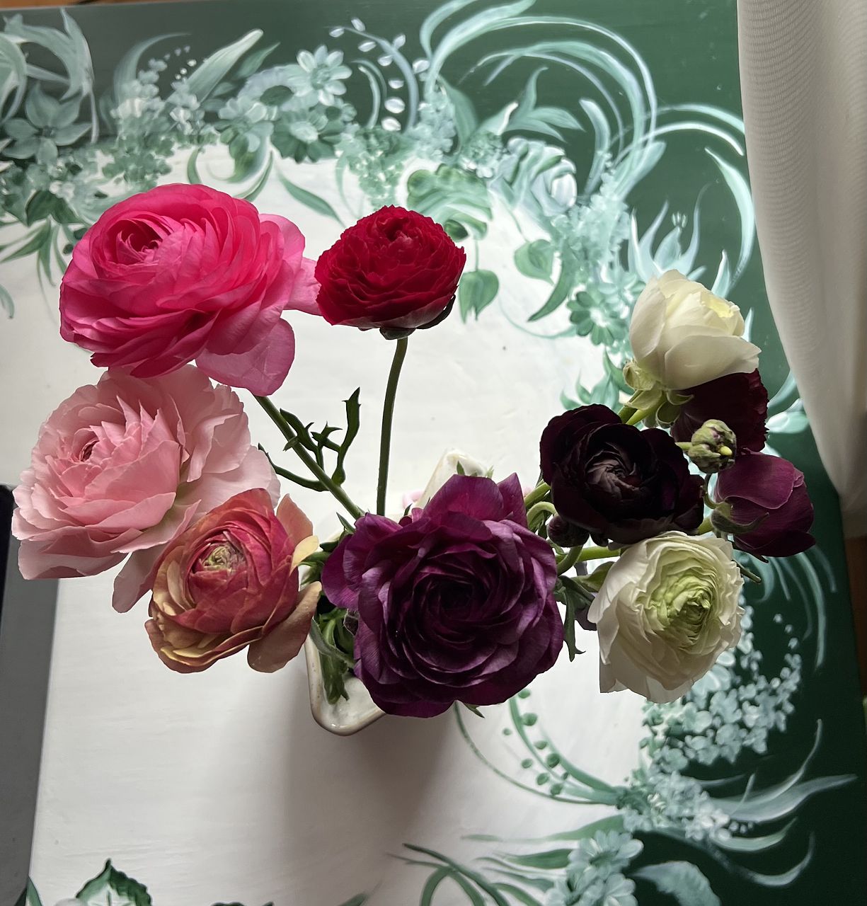 たくさんの大輪のラナンキュラスです。記載通り咲いている途中で首からポキポキ折れてしまいました。記載どおり、首から折れて届いたお花が2つありましたが、小さなお皿などで置いておくと開花し、いろんなところで楽しみました。その分お花を多めに入っていました。