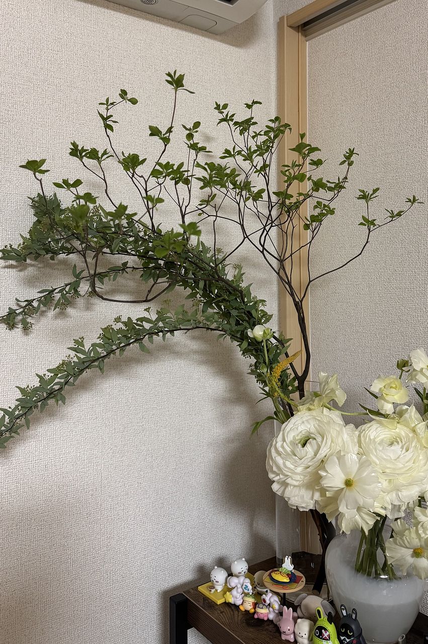 見事な枝ぶりのドウダンツツジがしっかりコンパクトに配達されたので驚きました🫢 コデマリはたっぷりロングサイズ 二箇所に分けても充分な量でコスパ良しです。