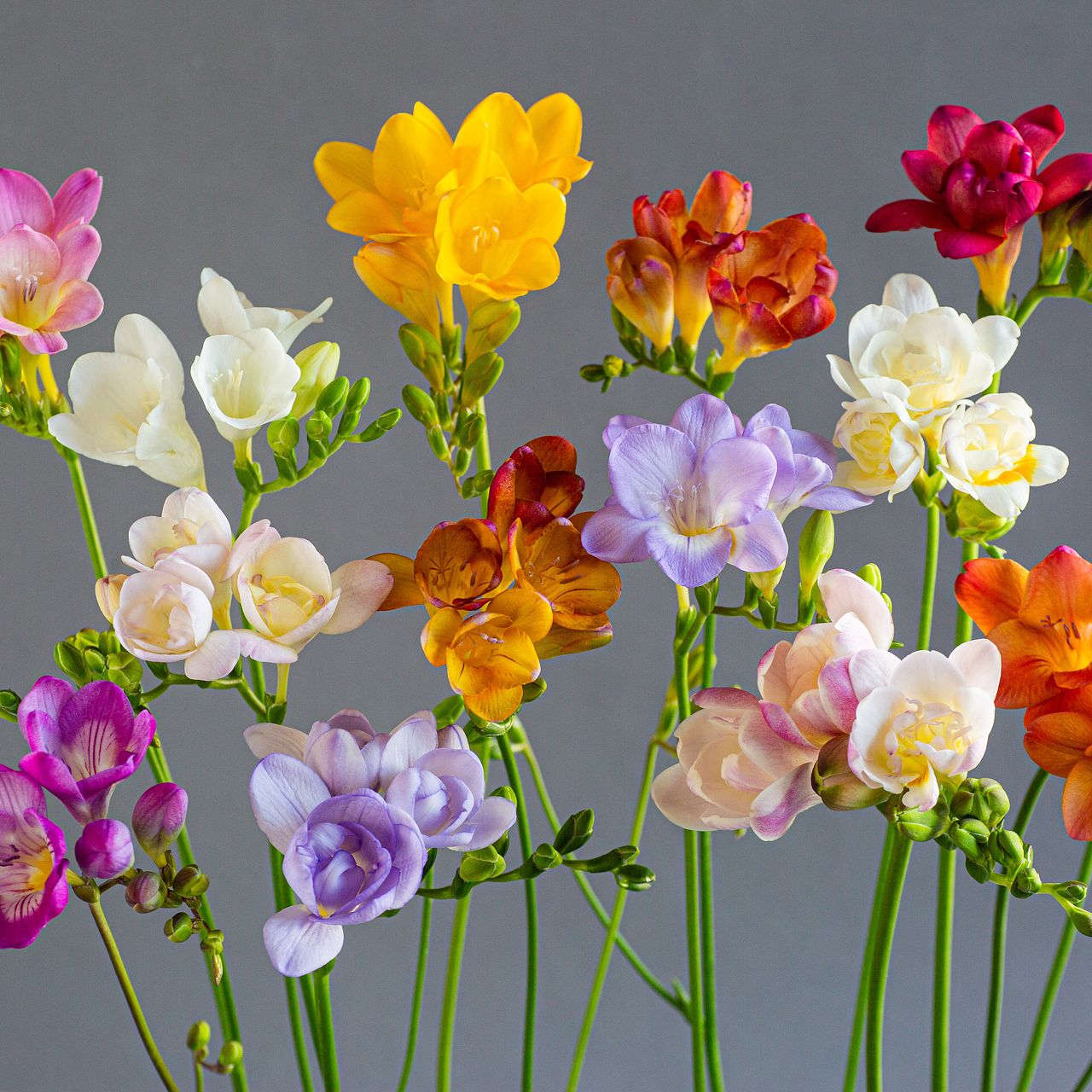 今の季節が旬のエアリーフローラのフリージアをカラフルにお届け🌈