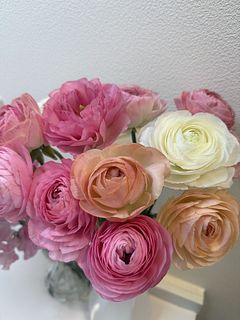 期待通り、ピンクの素敵な可愛いお花達です。ボリュームもあり、ほのかに甘い香りも漂ってきてリビングが華やかになりました。 ラナンキュラスがとにかく美しく、息子と一緒に毎日癒されています。