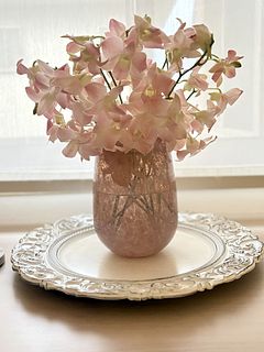 ピーチカラーのデンファレがまるで桜のようです♪新しく購入した花瓶にも素敵に収まりました。 やっぱりデンファレは空気は、変えるほどのエネルギーがありますねー^_^