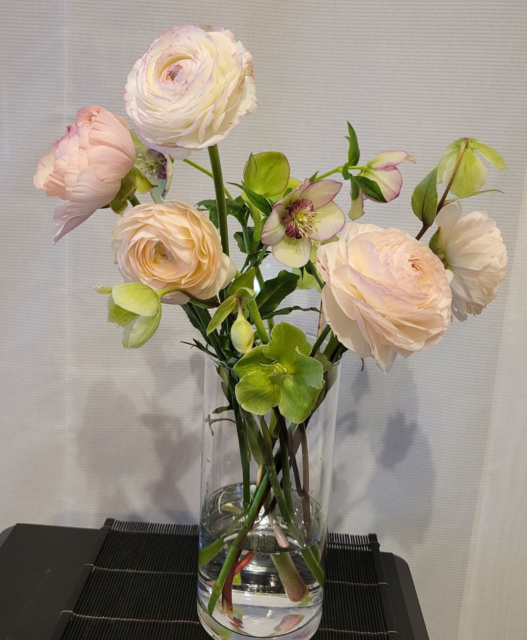 ラナンキュラスとクリスマスローズの品種はおまかせになります。2枚目以降の写真をぜひご確認ください。