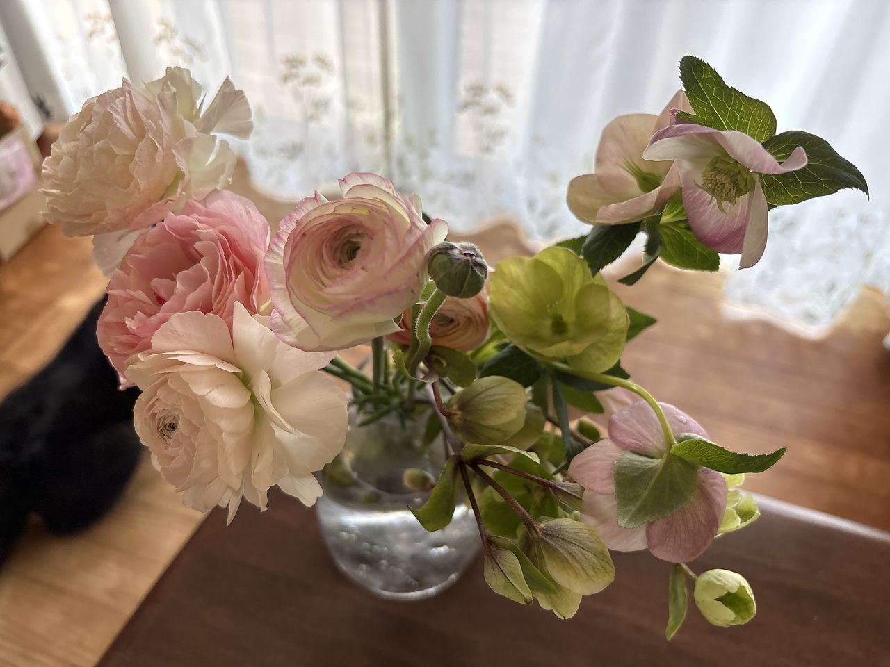 クリスマスローズとラナンキュラスの淡い色合いがとても良かった