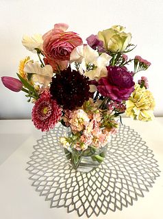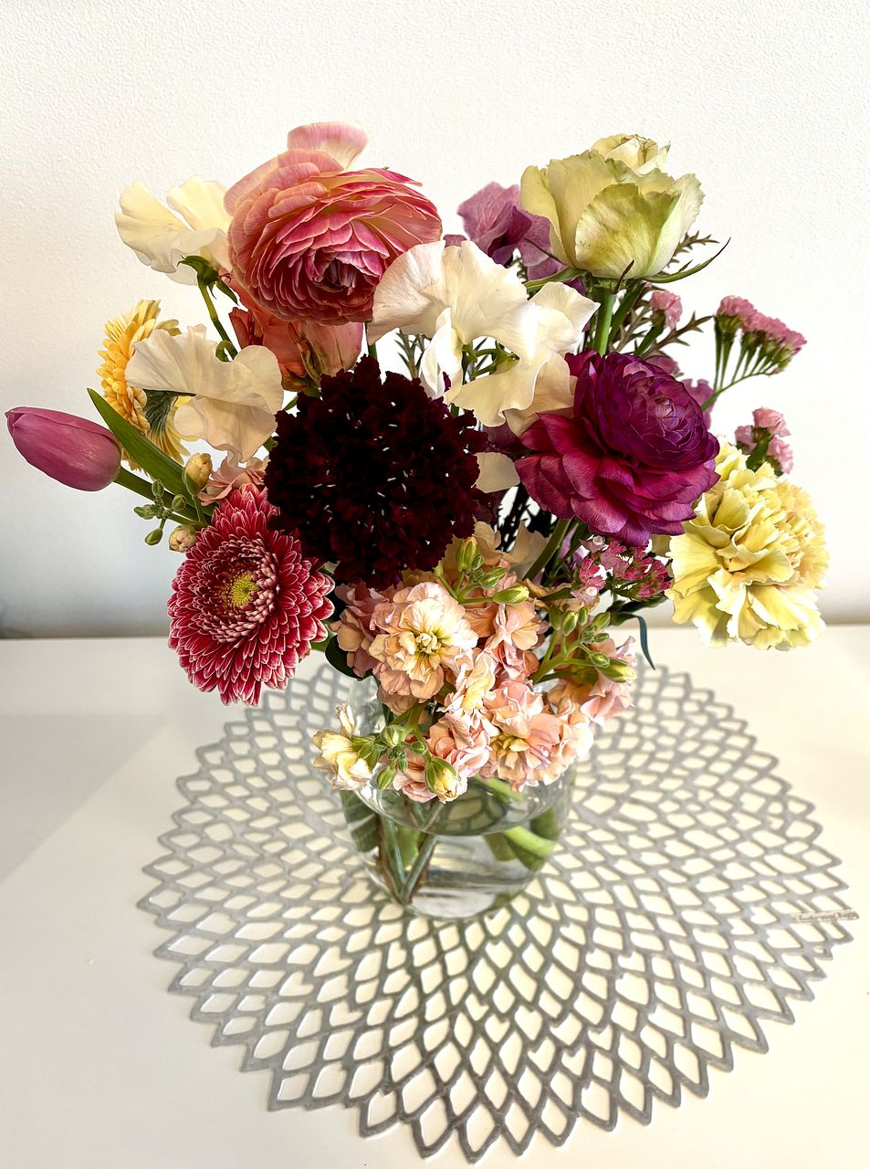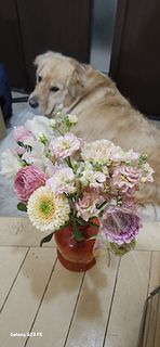少し赤の入ったアスチルベと白のスプレー小菊などを入れて、作りましたが、豪華になりました。