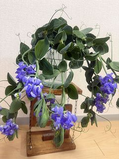 箱も大きくて、ボリュームがあり驚きました。フレッシュなグリーンとパープルがとても美しく、葉やツルの感じも生き生きとして楽しめそうです