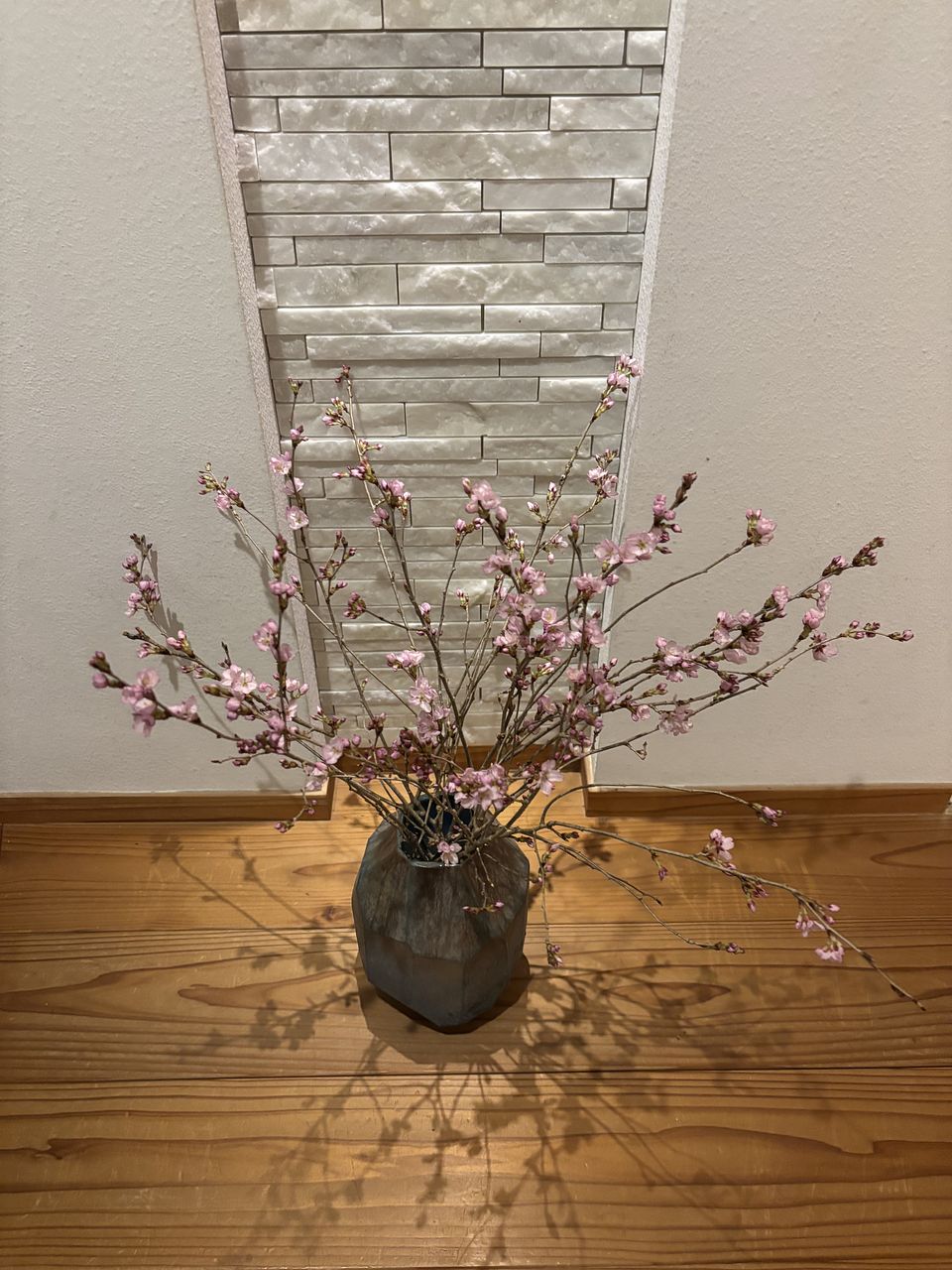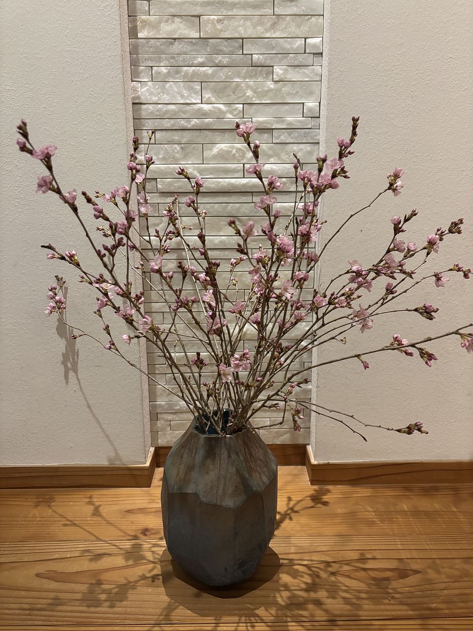 蕾が沢山ついた彼岸桜が届きました。少しずつ開花していくのが楽しみです☺️写真は飾って3日目の状態。可愛い花が沢山咲き始め、入居者さんやお客さまを優しくお出迎えしてくれています。