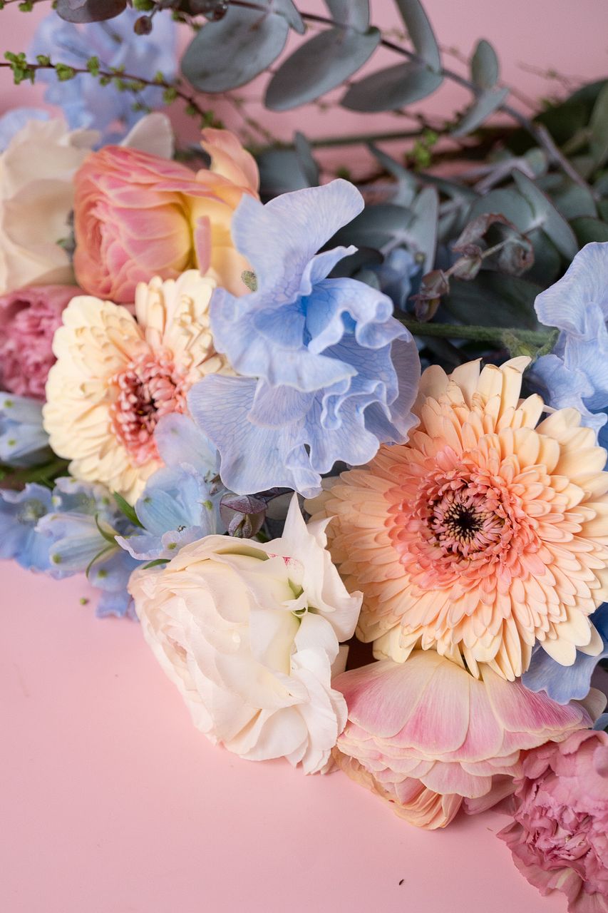 まず茎先をカットし、茎の7〜8割が浸かるイメージで深いお水に数時間つけてあげて。水圧で花に水が届きます。水揚げが完了したら、毎日のお世話は浅水〜中くらいの水量で。水換えはこまめにしてあげましょう。切花の栄養剤を使うと、バクテリアの増加を減らせるのでおすすめです。