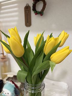 黄色のチューリップ 一日経つとしっかり水揚げしてくれました 黄色だけってところがとてもいいです💛