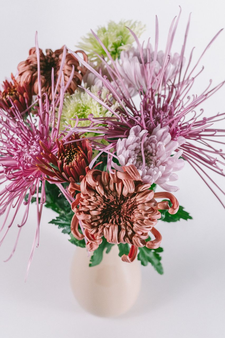 デコラ咲きやポンポン咲き、スプレーマムなど、さまざまな咲き方や色合いが魅力的。
