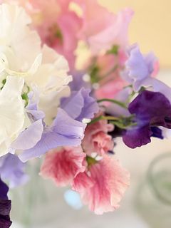色とりどりのスイートピーが届きます。色味はランダムです。