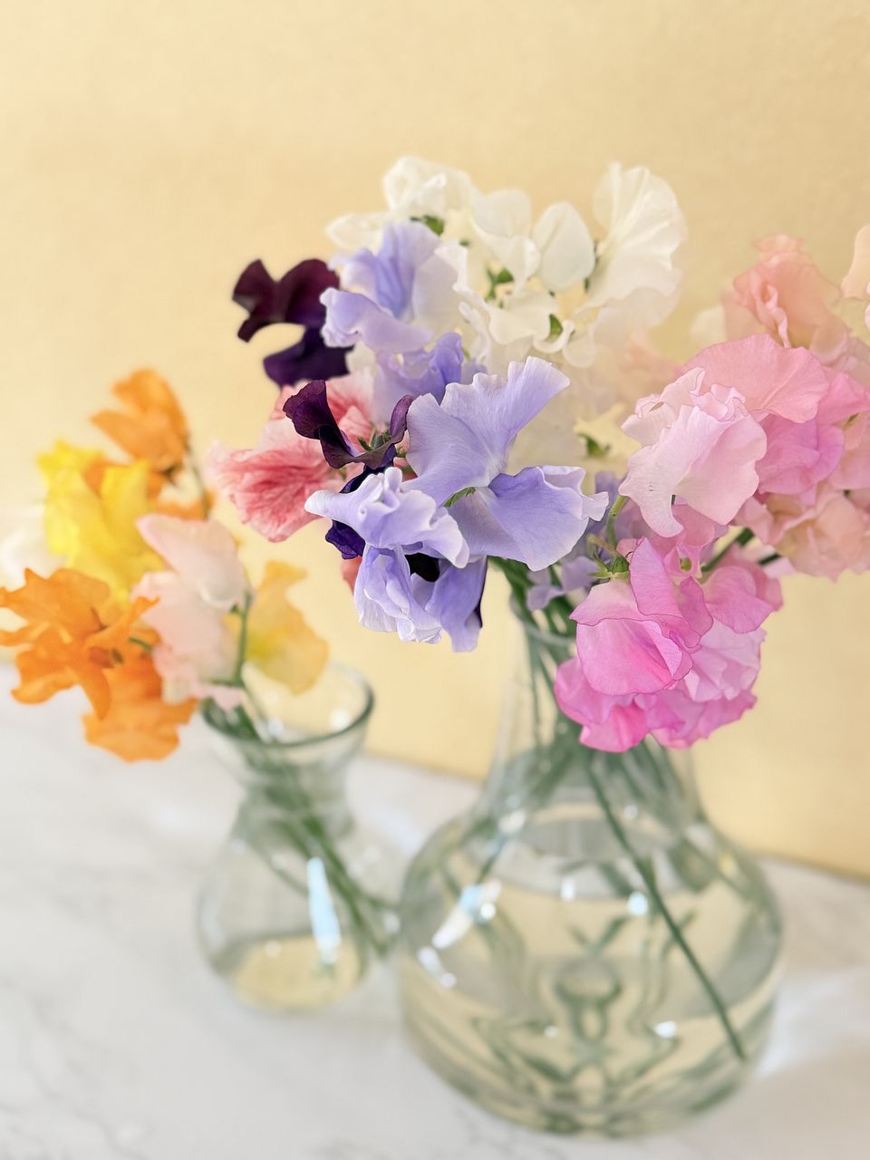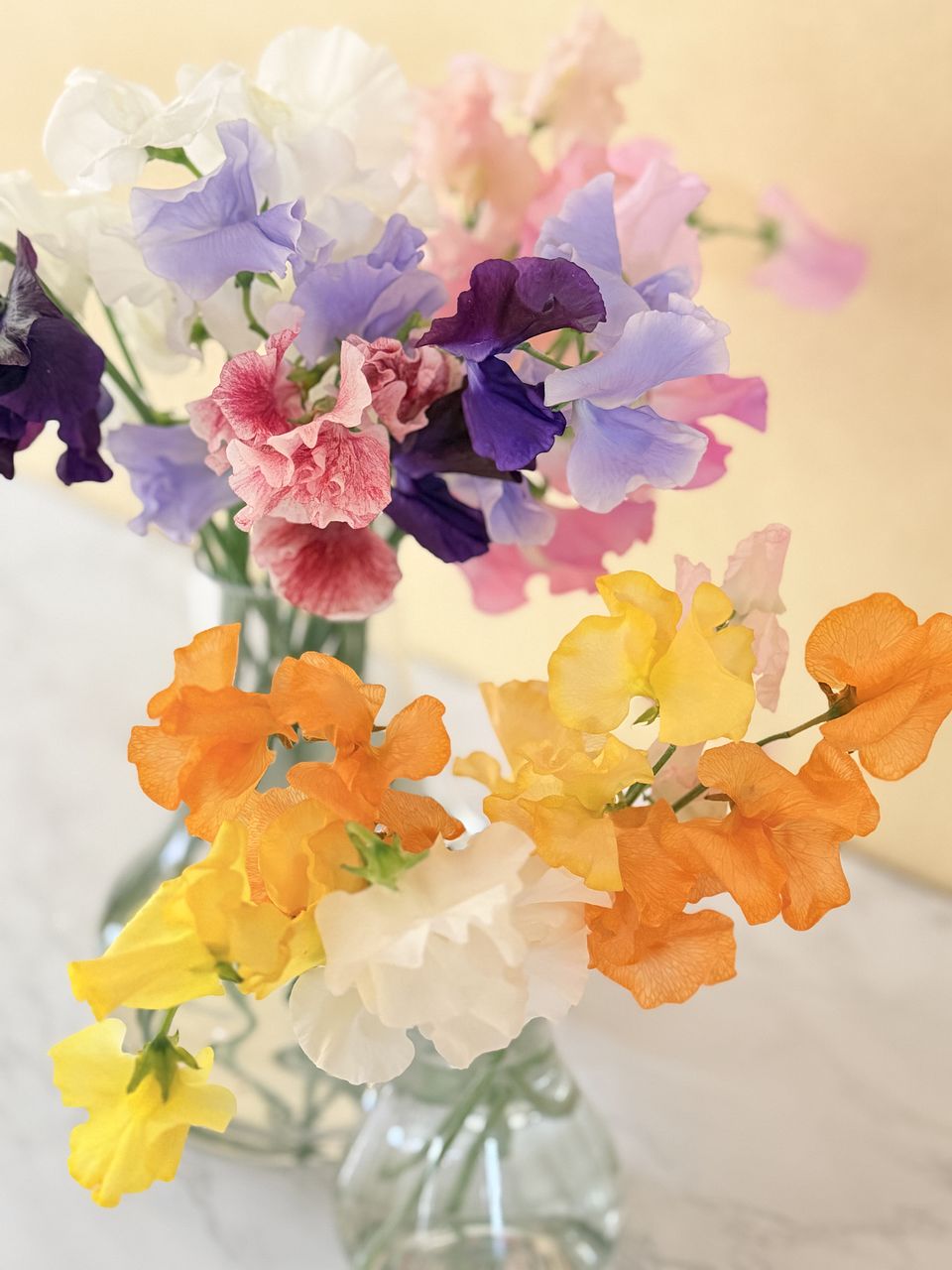スイートピーをたっぷり20本以上!色はおまかせでカラフルにお届けします。