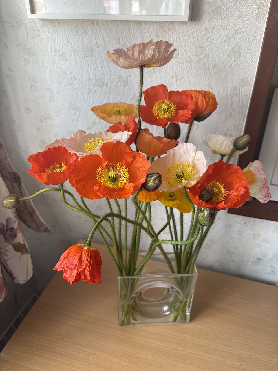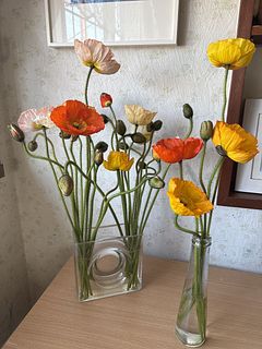 ポピーは俯きがち。紙に巻いて水揚げを行ってみて。