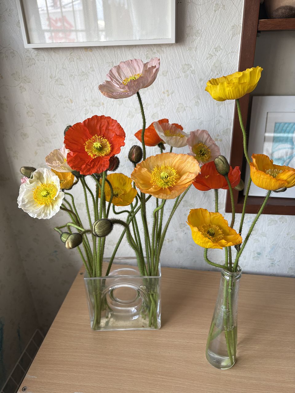 ポピーの季節がやってきました!おじぎをしたような蕾と、くしゃっとした花びらが愛らしいお花🌼