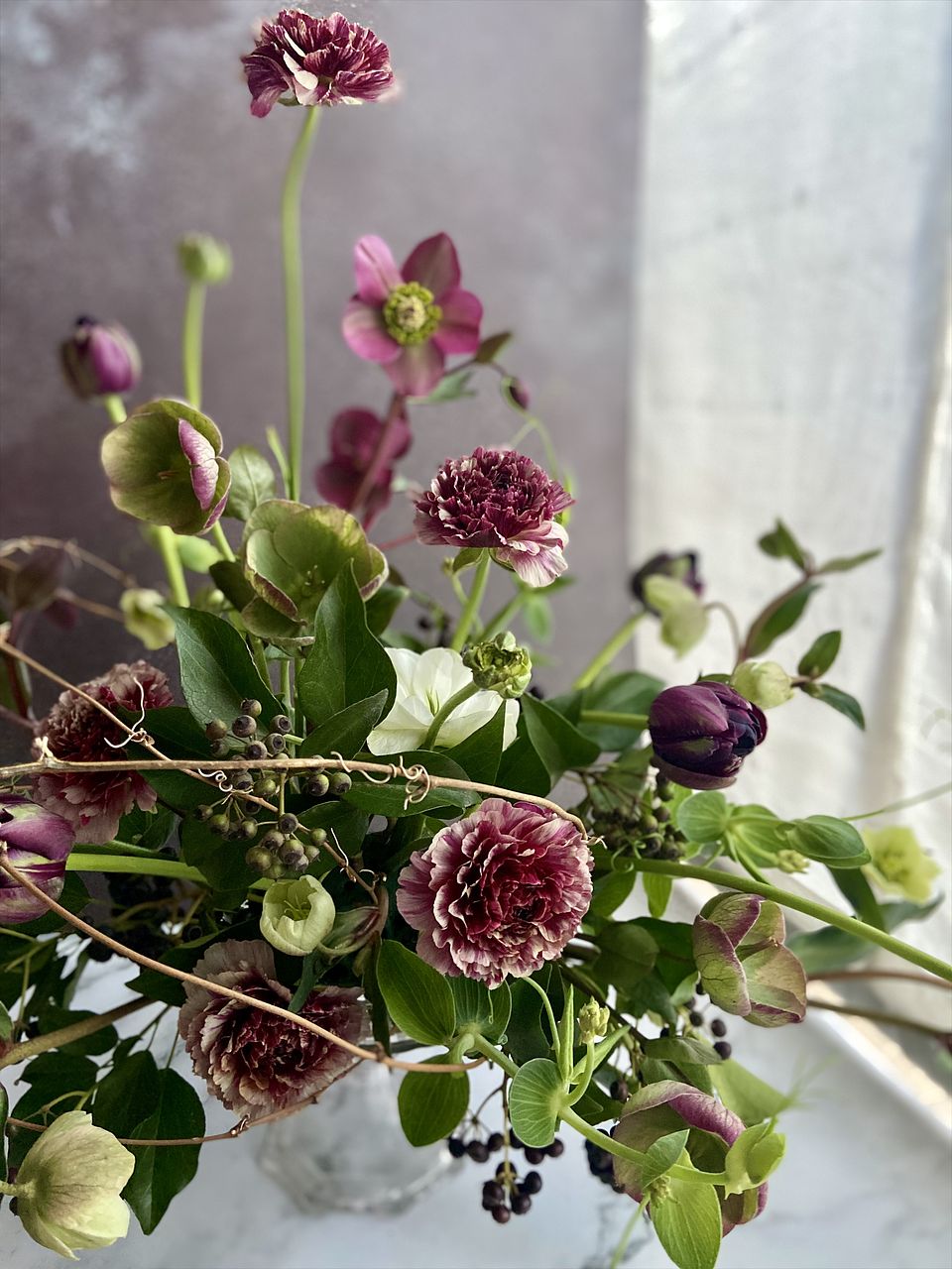とても素敵なクリスマスローズです! 水下がりもなくシャキッとしておりました。 念のためぬるま湯での湯あげもしてからアレンジに使用しました。 シックな色合いの花達と合わせてアレンジしましたが、イメージ通りの仕上がりになりました^_^