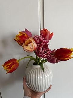 思わずご機嫌な気分になっちゃう🥳オレンジ、コーラルレッド、ビビッドピンクの個性的なチューリップを集めました。