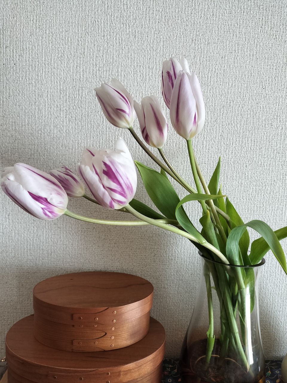 ラフに飾るだけでお部屋がおしゃれな印象に✨毎日伸びるチューリップをお楽しみください。