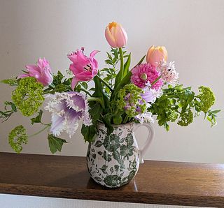 チューリップ、スイートピー、ラナン、大好きがいっぱい詰まったブーケでボリュームもめちゃくちゃありました。いつも有難うございます。春の香りと色にほっとします