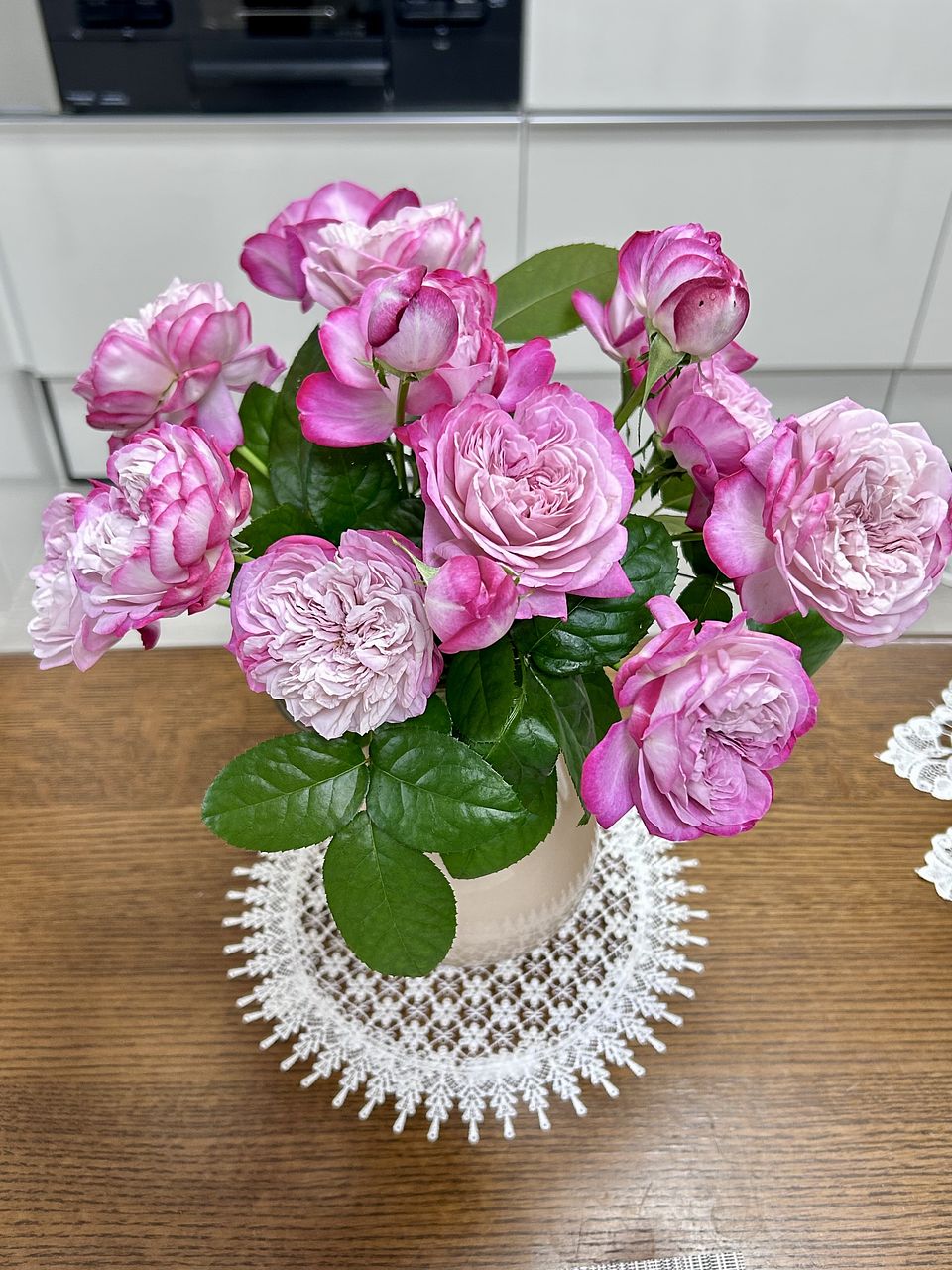 蕾は1本でしたが、届いて5日目で蕾以外は超満開 色はワイン薄いピンク、ホワイトまでグラデーションになってシックな感じです。香に癒されてます。 前日に届いた子の香もあり過去一の贅沢。