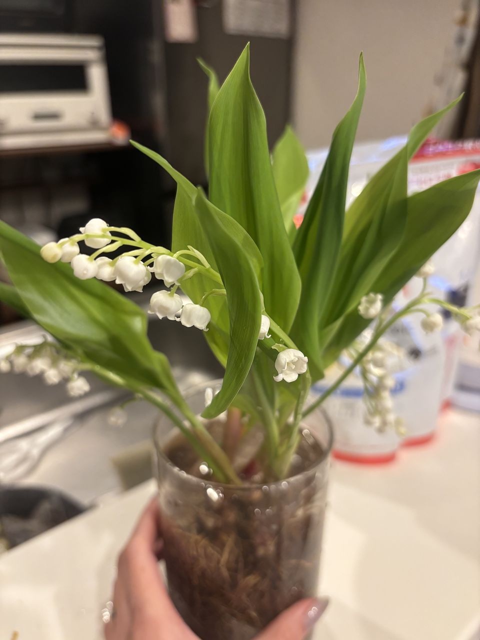 根も綺麗で、スズランも可愛らしいです! 一度水が下がってしまいましたが、処置後元気になりました!長く持つといいです😊