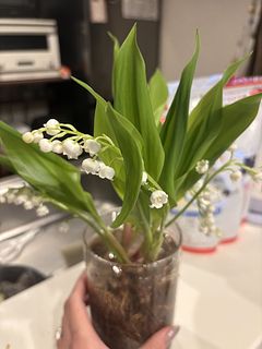 ずっと気になっていたすずらんをやっとお迎えできました。小さな可愛いお花といい香りに癒されています。写真より根がもりもりで花瓶いっぱいになりました(笑)