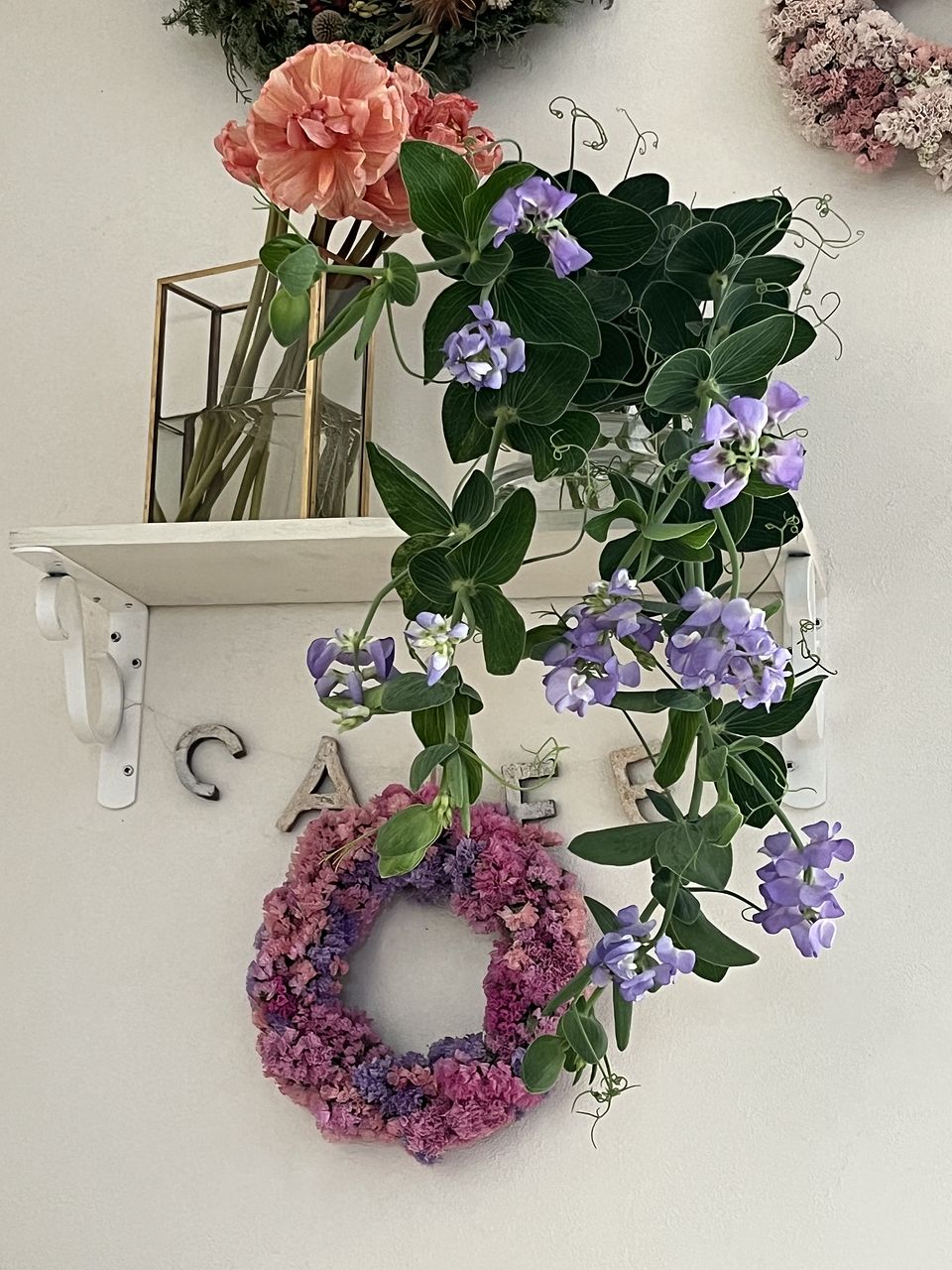 棚に置くとこんな感じです。お花の楽しみ方が広がります。