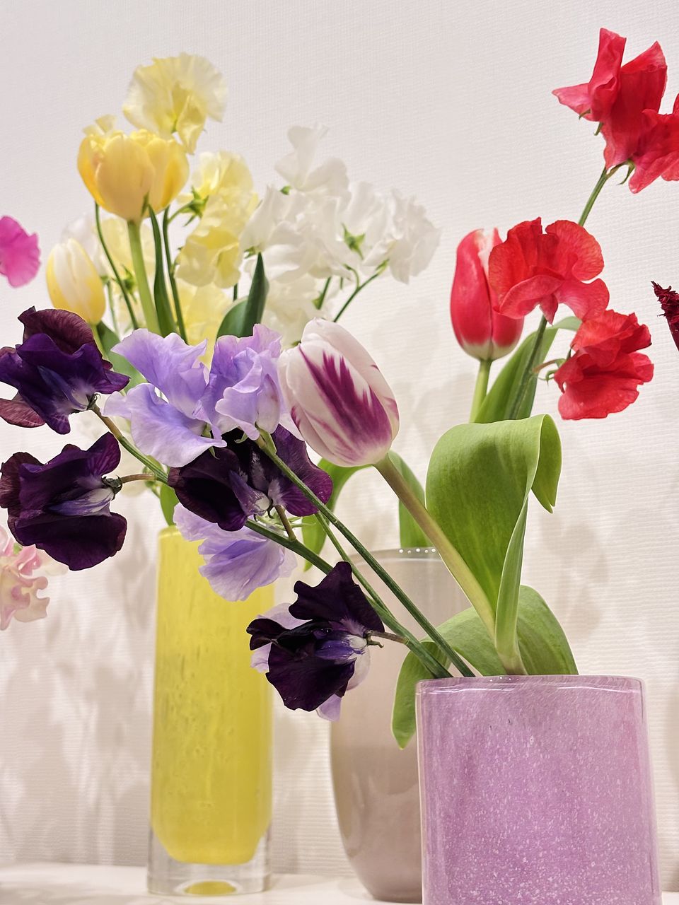 いろんな種類、色のチューリップたちなのに統一感あってとても素敵です。華やかで嬉しくなりました
