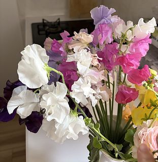 染めのスイートピーが入る可能性があります。