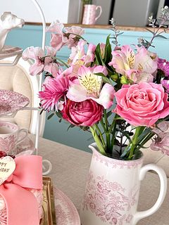ピンク色のお花が沢山入っていて、我が家に春がやって来たような華やかなブーケでした。 玄関に生けたら、バラのいい香りがして癒されます。