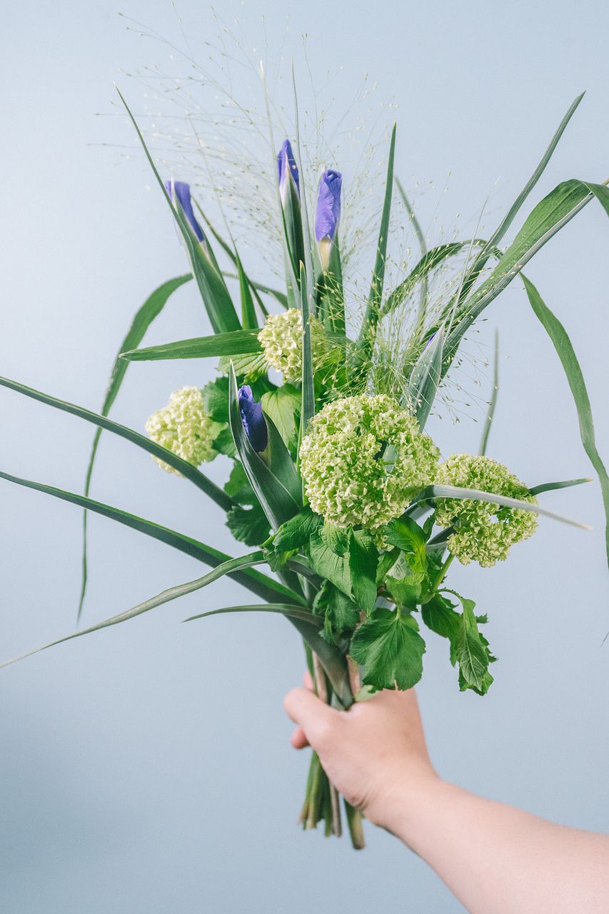 花菖蒲と季節の草花を束ねた涼やかなブーケ😍