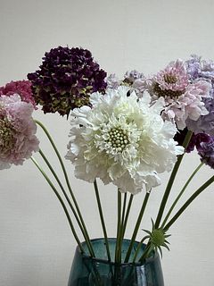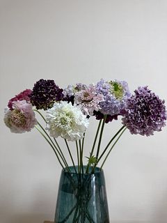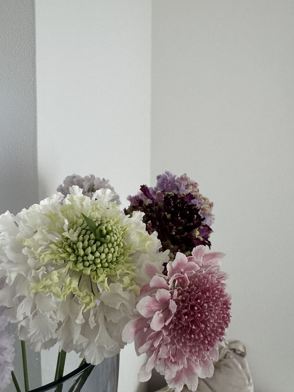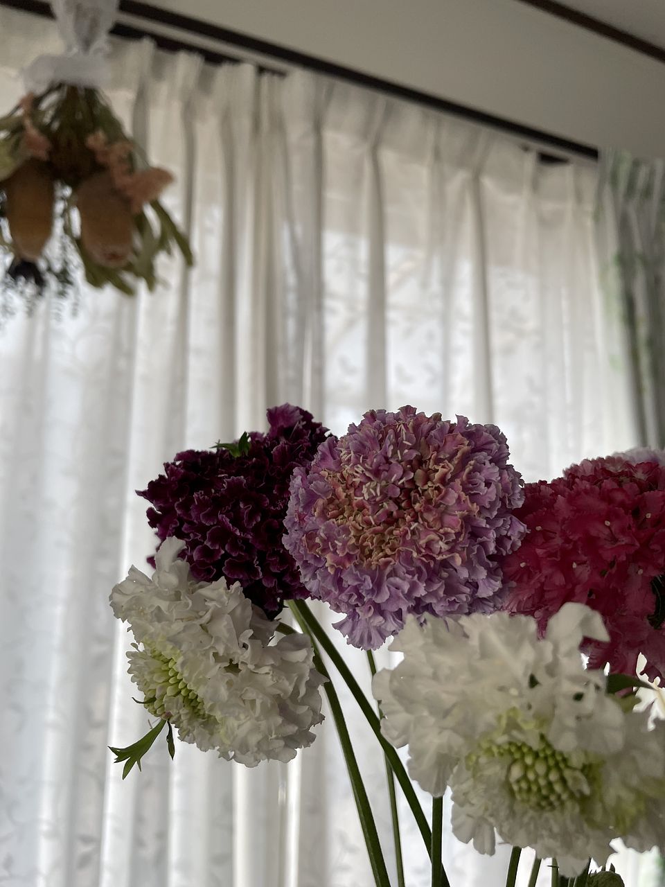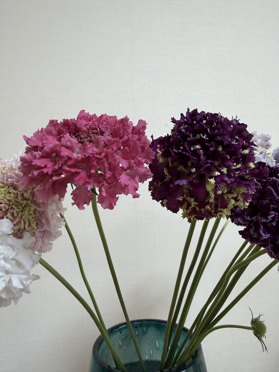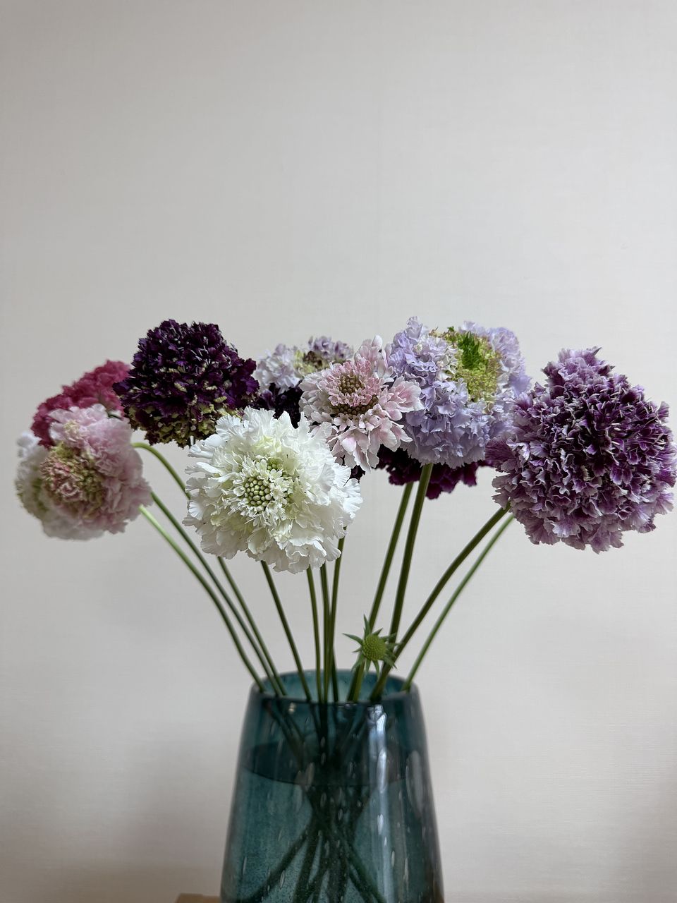 スカビオサもそのひとつでフリフリ三姉妹、チョンマゲ4兄弟に続いてすっかり寺尾さんのファンになり、花持ちもとっても良く最後は15cmくらいまでカットして3週間は楽しめました🫶🏻