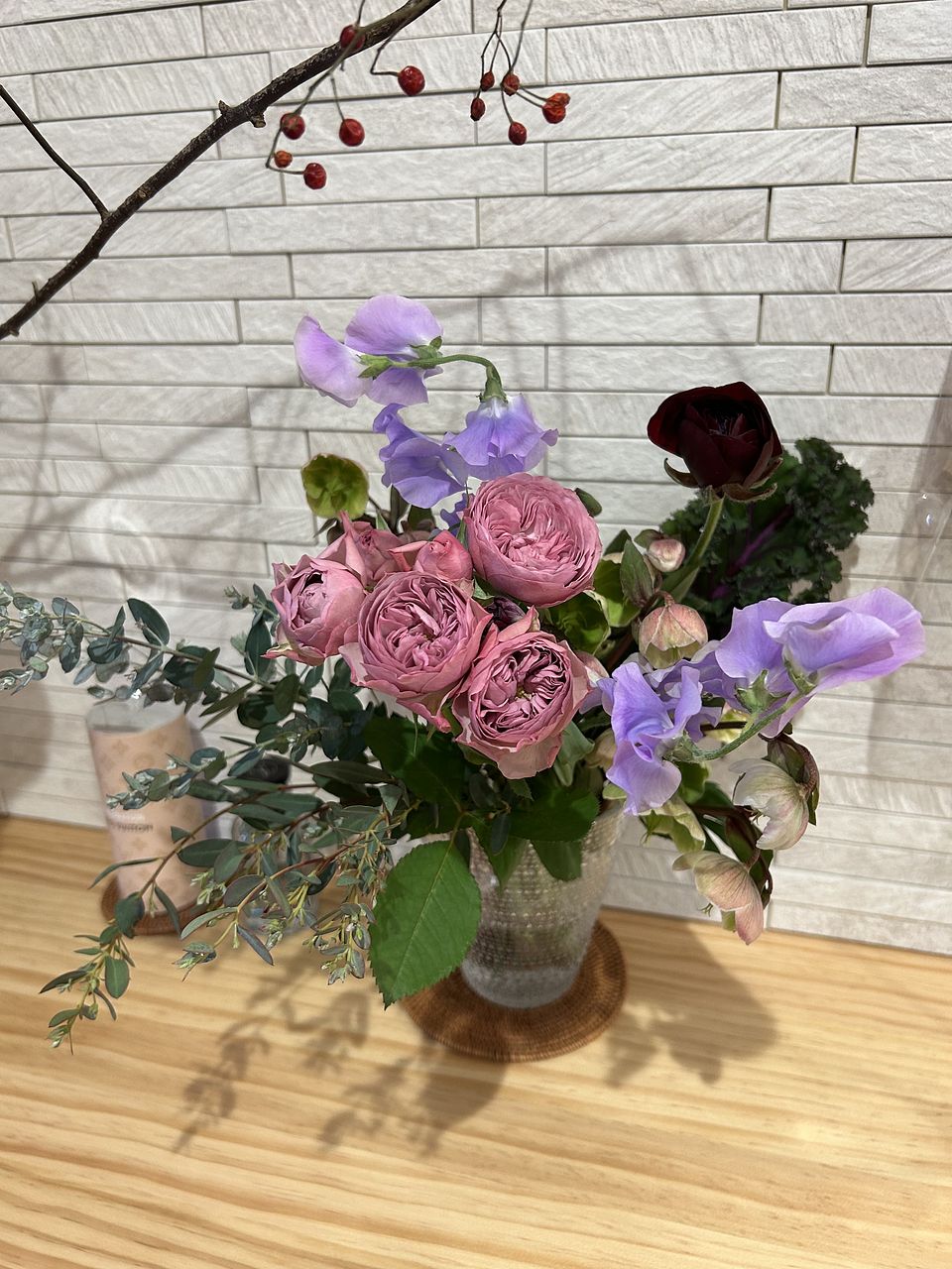 クリスマスローズと合わせるのはバラや季節のお花達。