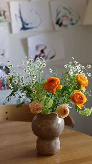 まず茎先をカットし、茎の7〜8割が浸かるイメージで深いお水に数時間つけてあげて。水圧で花に水が届きます。水揚げが完了したら、毎日のお世話は浅水〜中くらいの水量で。水換えはこまめにしてあげましょう。切花の栄養剤を使うと、バクテリアの増加を減らせるのでおすすめです。